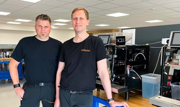 Vi har sat ham, værkstedsleder Kent Halgreen og Marketing og HR-ansvarlig Mette Kaarsberg i stævne i Bentax’ kantine. Med en friskbrygget kop kaffe i hånden, selvfølgelig.