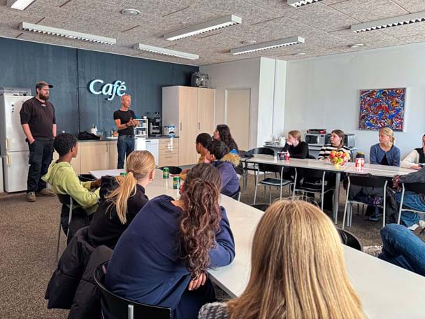 Når vi inviterer skoleklasser ind, er det for at vise dem, hvad et arbejdsliv også kan være, og hvad der kan give mening og værdi for den enkelte medarbejder, kunderne, virksomheden og samfundet,” fortæller Henrik.